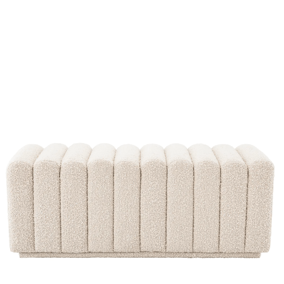 It’s easy to fall in love with Bench Bente, which lends charm and warmth to your living room or bedroom. Featuring a bouclé cream upholstery with deep channel stitching, this bench will offer you a very comfortable seat.