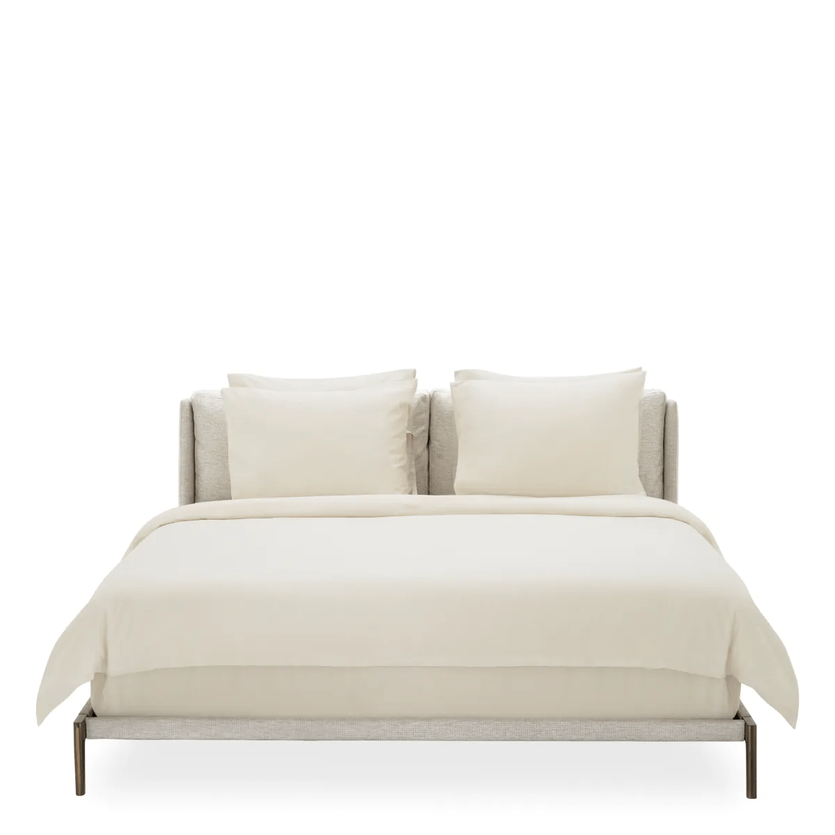 Indulge in the luxurious Bed Frame Gonzales from Eichholtz, a symbol of sophistication and style. This piece, expertly crafted in textured Loki natural fabric, boasts a medium bronze finish that radiates timeless elegance. The sleek, modern design of the Gonzales Bed Frame, coupled with its contemporary elegance, elevates your sleeping experience to unparalleled levels of comfort and refinement.
