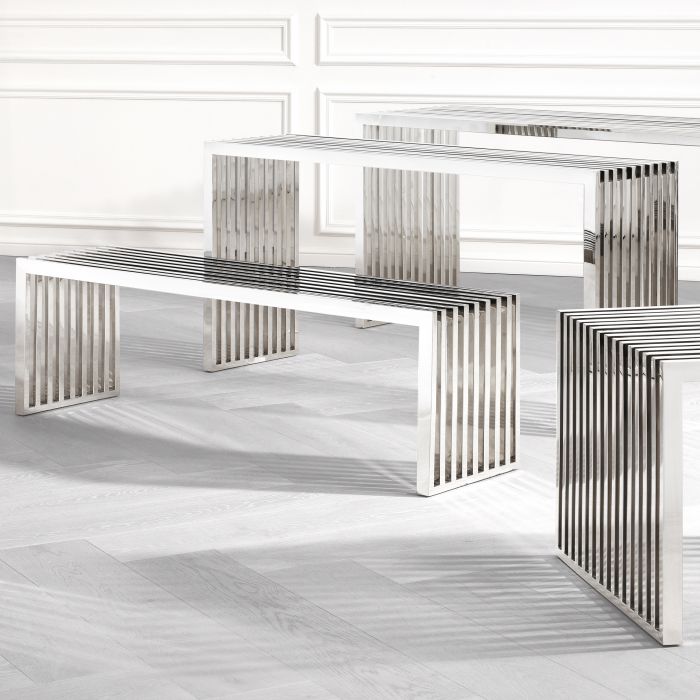 Characterised by an architectural design and a slanted line pattern, the sleek and shiny Carlisle Bench is a fine addition to modern and contemporary décors. It is crafted from stainless steel and features a polished finish.ICONIC EYE-CATCHER Inspired by New Objectivity or New Pragmatism (Dutch and German modernist architecture from the 1920s and 1930s), the Eichholtz Carlisle series is characterised by angular shapes and a design that is free of ornamentation and decoration. Mix with design lighting and furniture from the Eichholtz collection for a sleek, distinctive interior style.