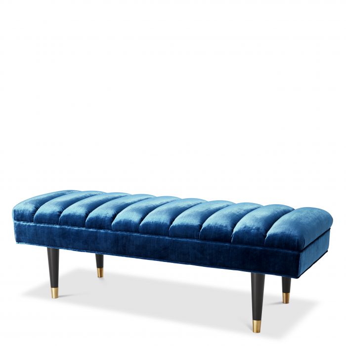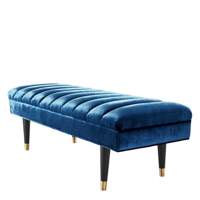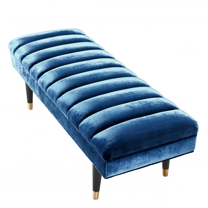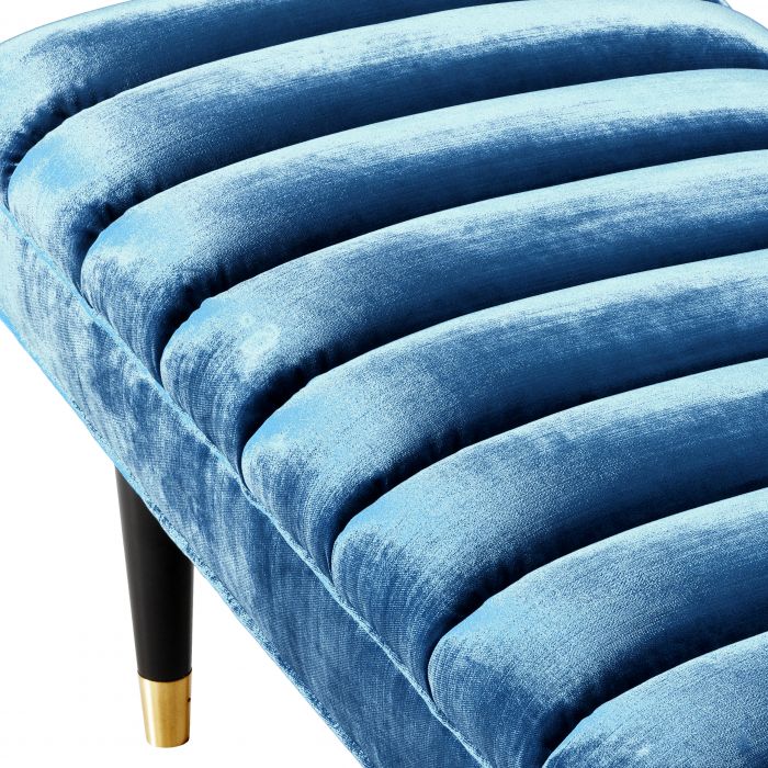 The lovely Margot L Bench features tapered black feet and a padded upholstery in Aegean blue. This alluring ottoman seamlessly fits into traditional and eclectic interior schemes. Place it in your lounge or entryway, or set it at the foot of your master bed.