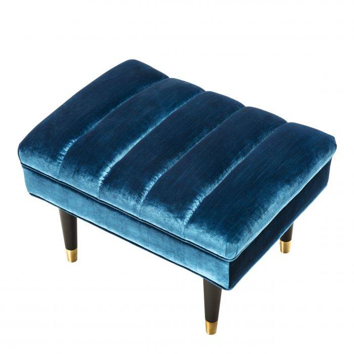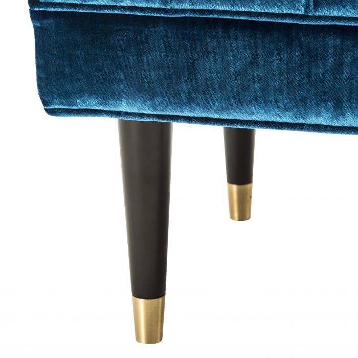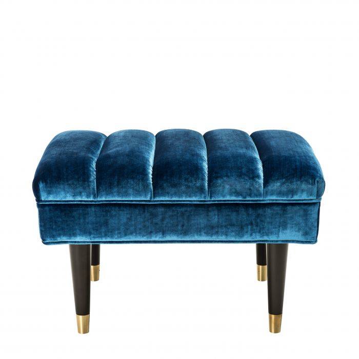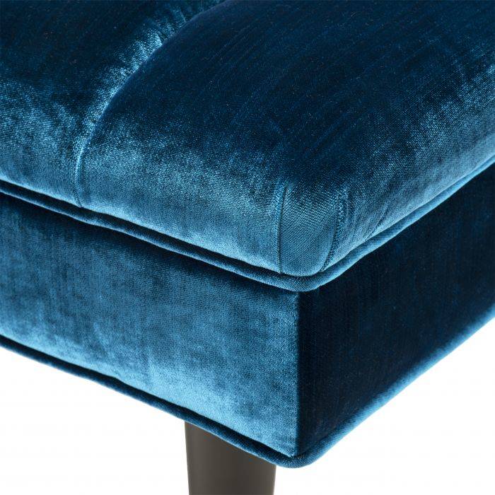 The lovely Margot S Bench features tapered black feet and a padded upholstery in Aegean blue. This alluring ottoman seamlessly fits into traditional and eclectic interior schemes. Place it in your entryway, lounge or entryway.