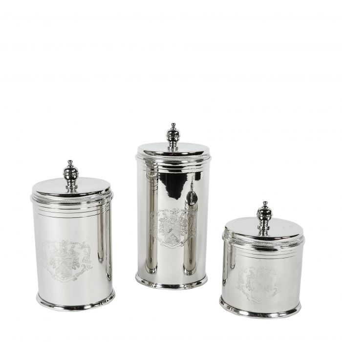 Blending beauty and usefulness, the Gaston Biscuit Box set is made out of quality metal with a nickel finish. This 3-piece canister set is etched with an emblem and has embellished knobbed lids. Perfect for storing biscuits and sweets while adding a stylish touch to your décor.