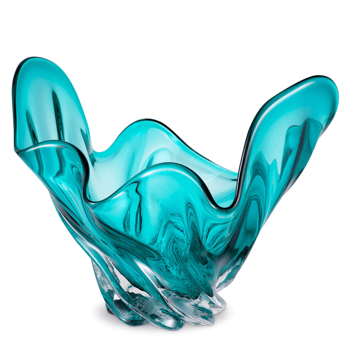 Featuring a vigorous design, this hand blown bowl from turquoise glass will bring a spirited vibe to any décor. Each piece slightly varies in colour, pattern, and size.