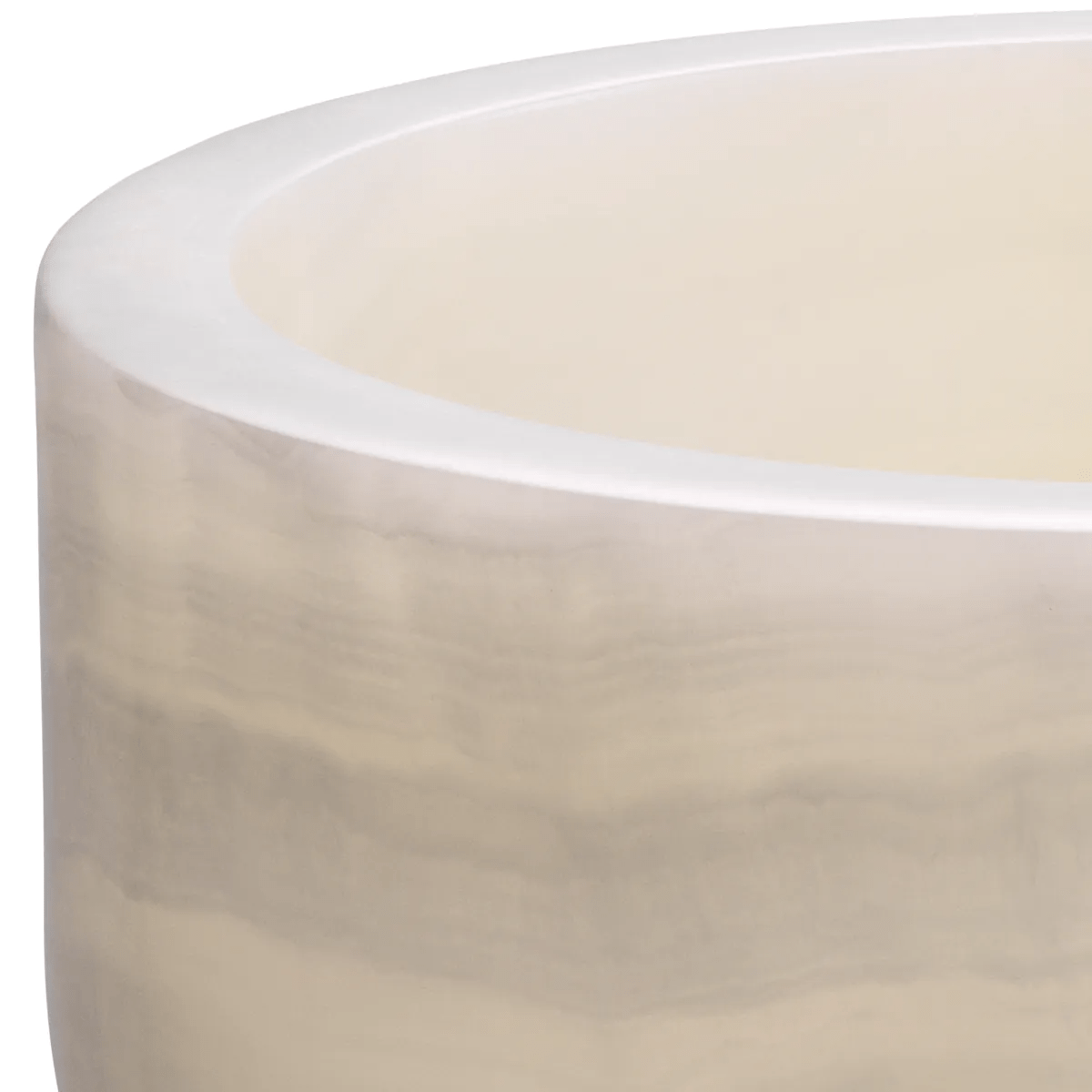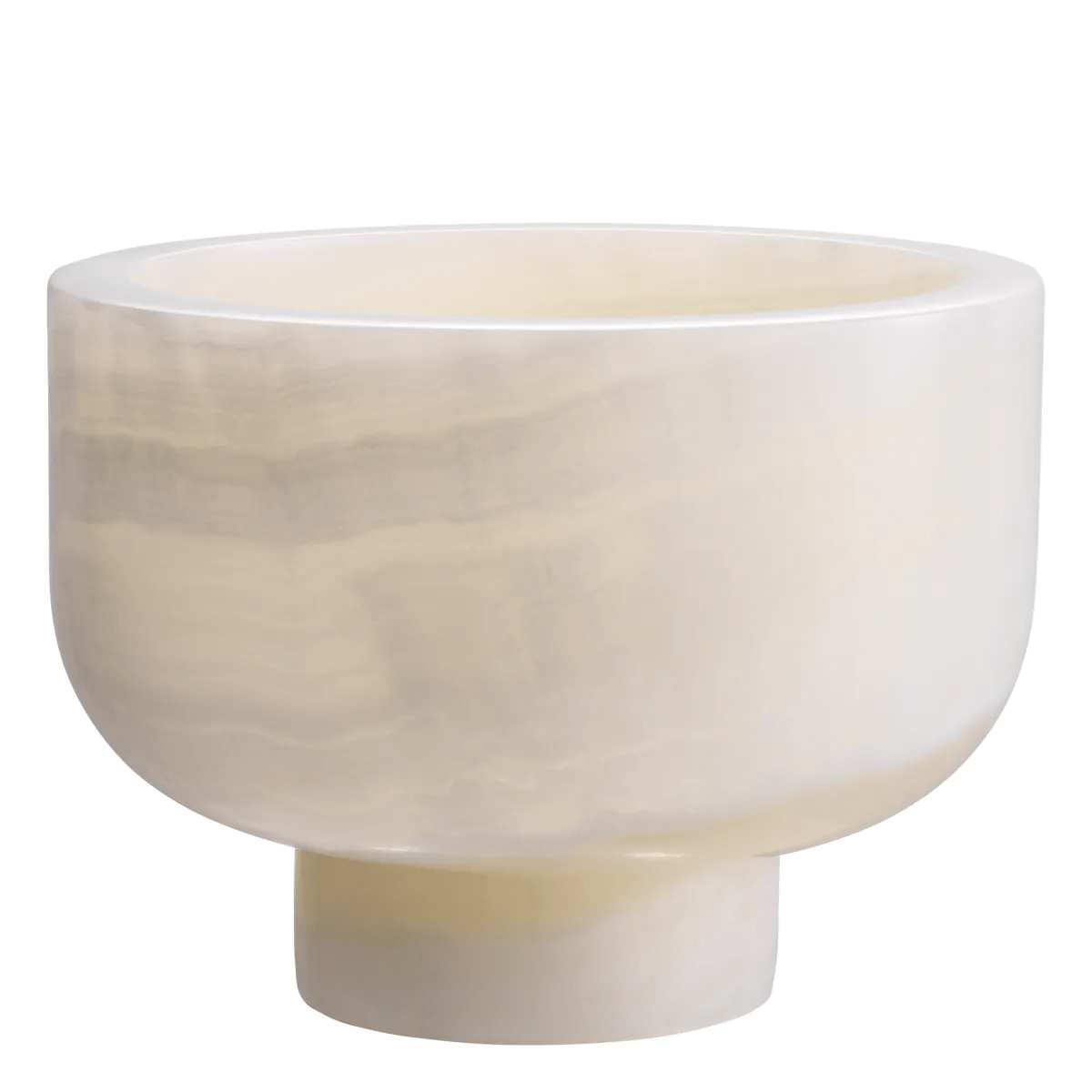 The Bowl Fayum is influenced by a group of Egyptian stone vessels (ca. 1887–1750 B.C.) in The Met collection. These cosmetic vessels from the Middle Kingdom were discovered in a tomb at Haraga. The Vase Fayumis exquisitely crafted by hand in onyx. Each piece offers its own unique coloration and natural veins.