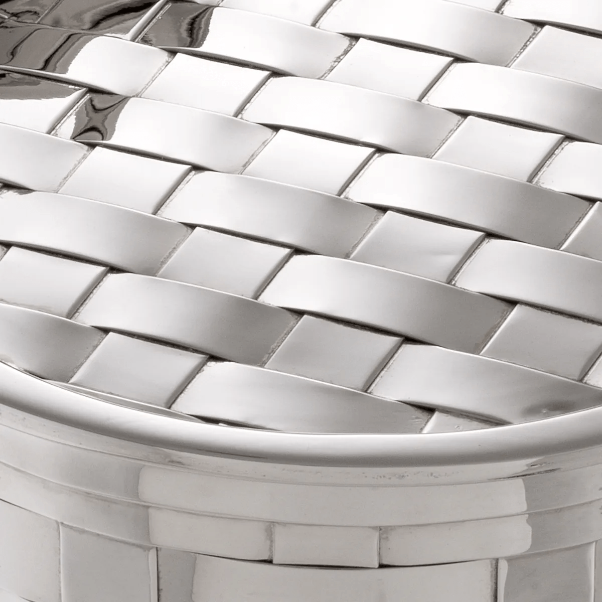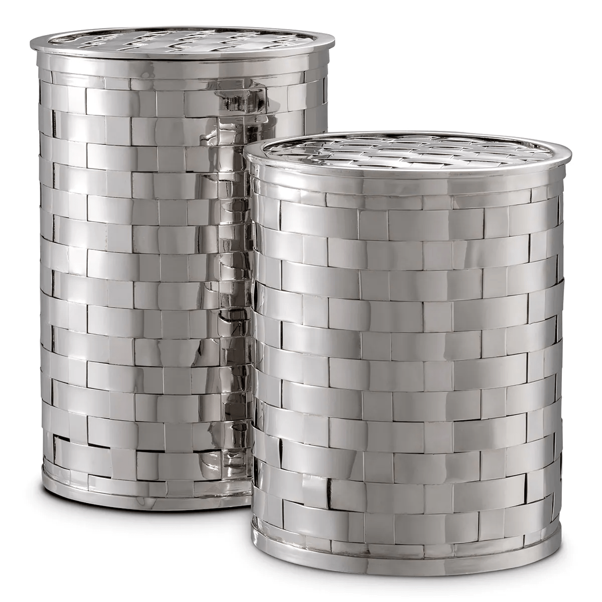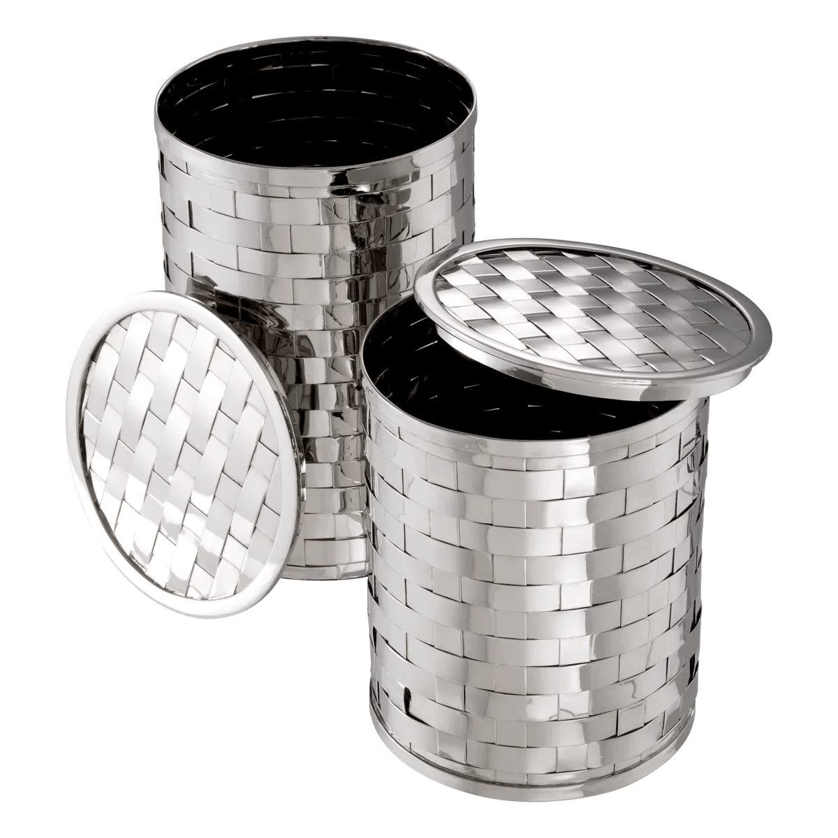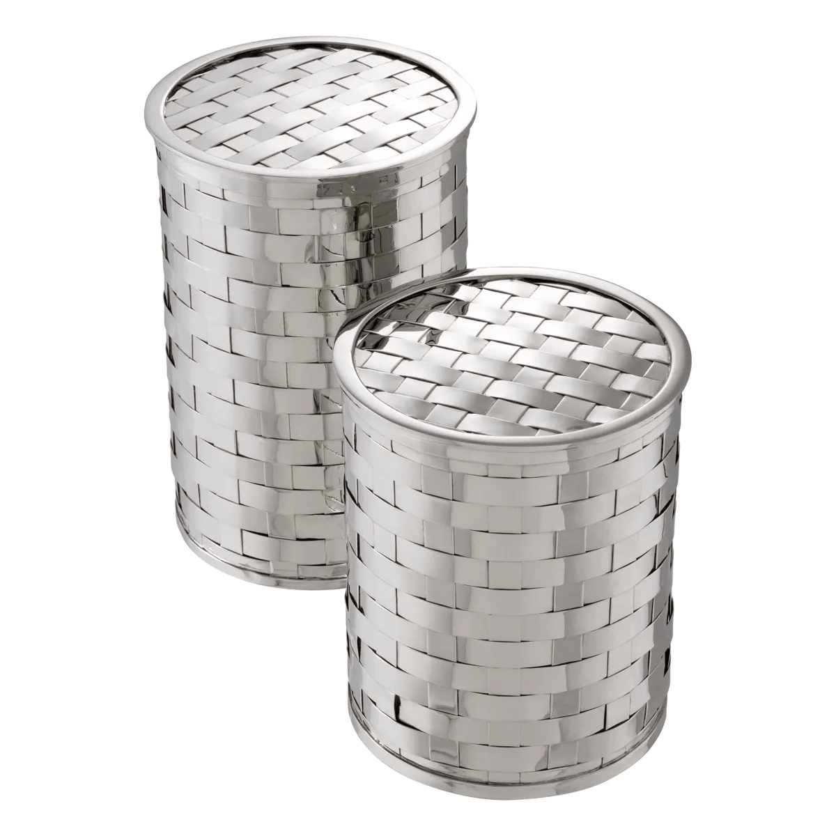 With space inside to store trinkets or jewellery, it makes for a charming vanity piece. Fitted in a polished nickel finish, each box features an attractive woven design.