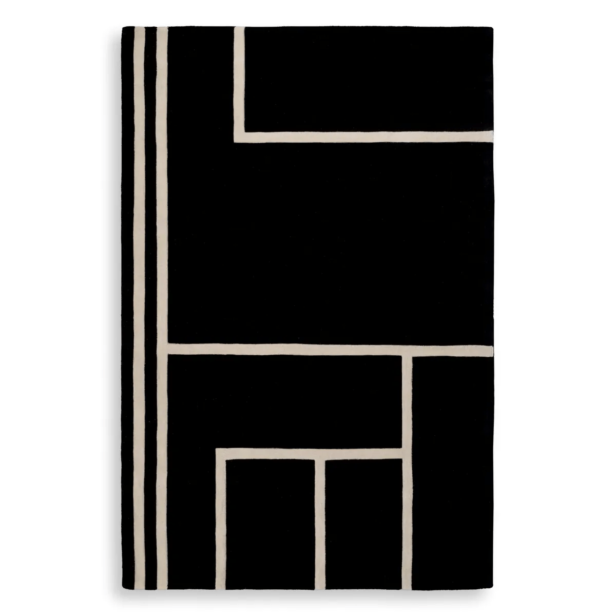 Hand-tufted, this plush rug features a bold, geometric design in black and off-white.