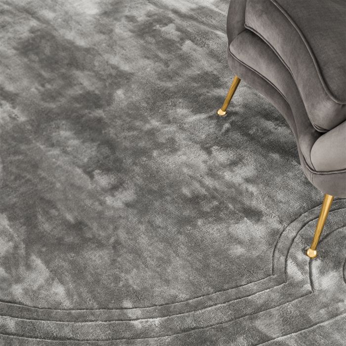 The platinum grey Palazzo Carpet Ø 280 cm comprises 100% viscose pile. Its silky viscose fiber is a perfect natural replacement for real silk. This beautiful hand woven rug is hard wearing and luxurious underfoot.