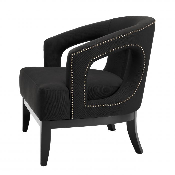Steal the show with the gorgeous Adam Chair. Exuding timeless beauty, this elegant mid-century modern seating with Albin black upholstery and accenting nailhead trims, is sure to be an eye-catcher in your lounge, bedroom or dressing room.