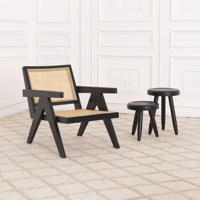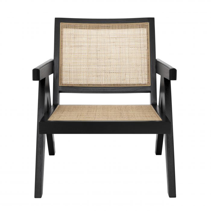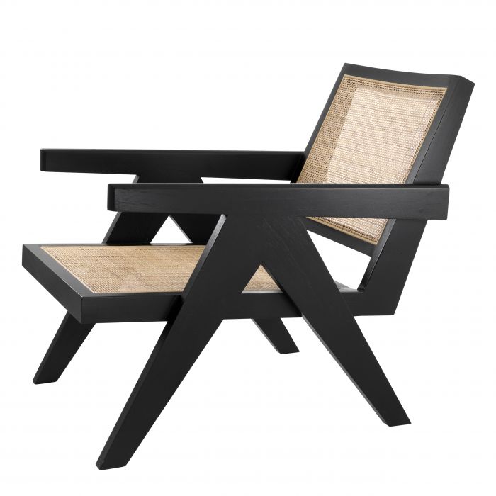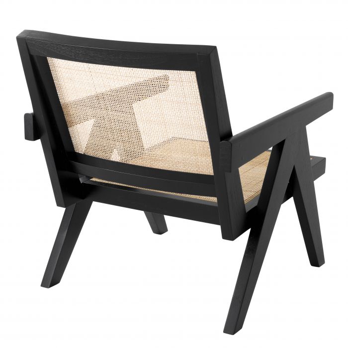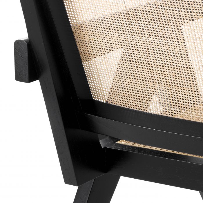 Inspired by the iconic design furniture of Pierre Jeanneret, the black Aristide Chair pairs quality with simplicity. Crafted from solid wood, this sturdy armchair features the V-shaped legs that are characteristic of Jeanneret’s celebrated vintage designs. Handwoven rattan cane adorns the seat and backrest.