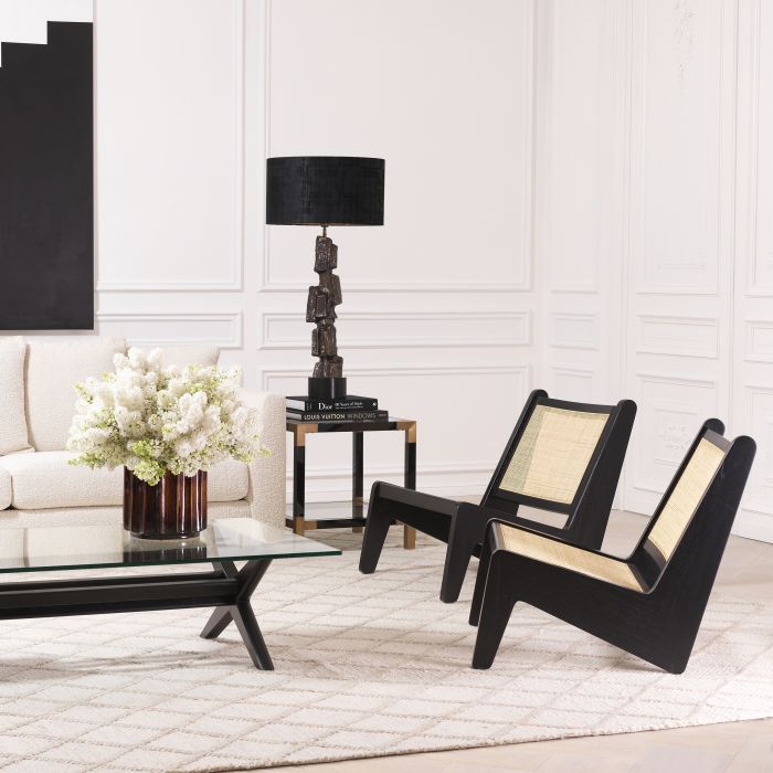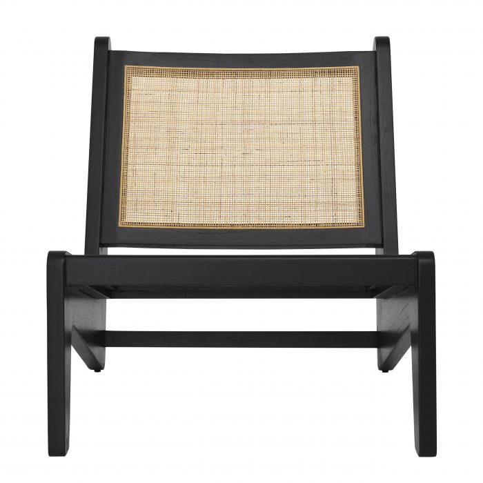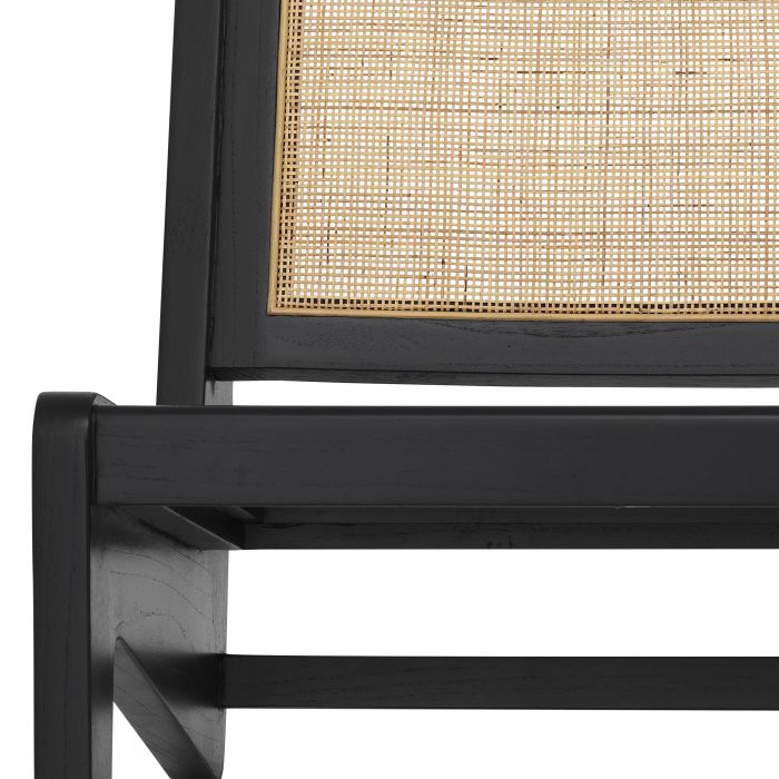 The vintage style Aubin Chair is made in the spirit of iconic furniture designer Pierre Jeanneret. Skilfully crafted from solid wood, it is provided with a black finish. The beautiful openwork seat and backrest comprise handwoven rattan cane.