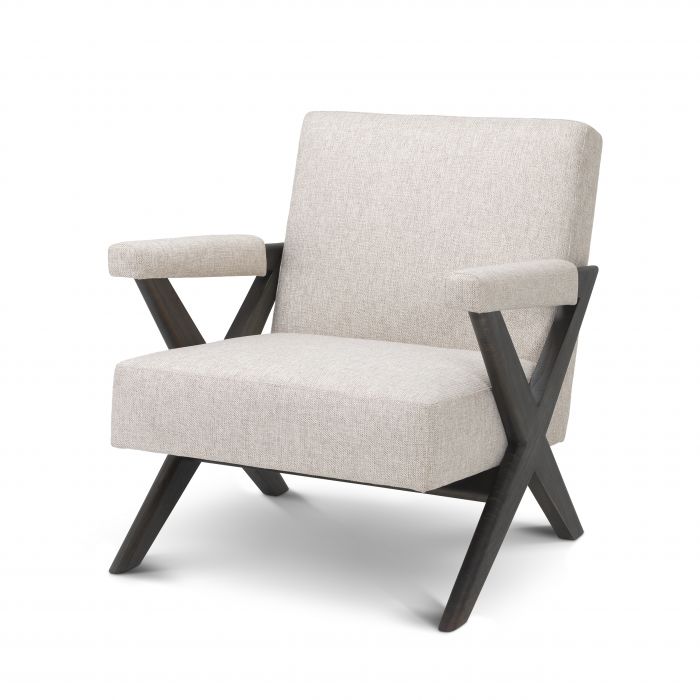 Inspired by the iconic design furniture of Pierre Jeanneret, the brown Érudit Armchair pairs quality with simplicity. Crafted from solid wood, it features the X-shaped legs that are characteristic of Jeanneret’s celebrated vintage designs. The seat, backrest and distinguished armrests are upholstered in a loki natural fabric.