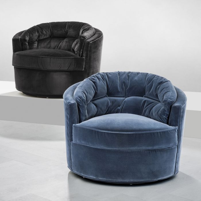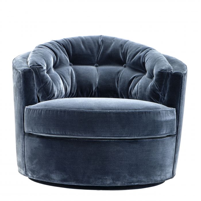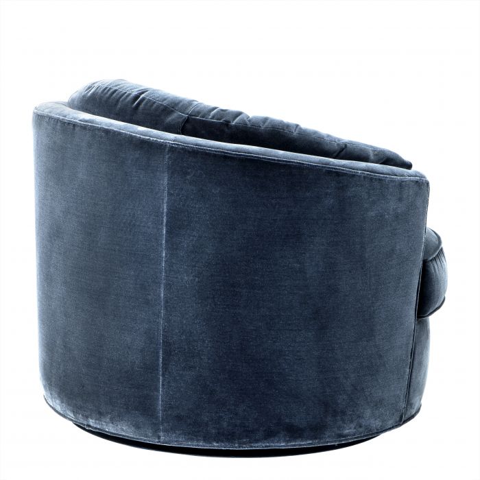 Make a bold style statement in your living space with the Recla Chair, presented on a swivel base. Featuring a deep foam interior for impressive comfort, it’s beautifully upholstered in soft Cameron faded blue velvet and neatly finished with piping.