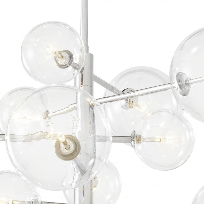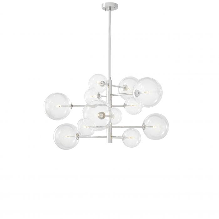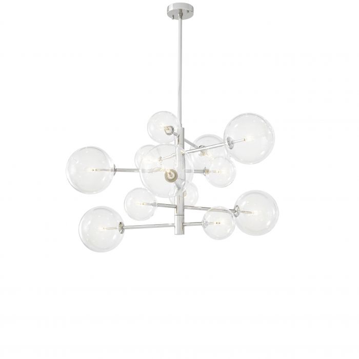 Create a retro-chic focal point in your living space with the Argento S Chandelier. This asymmetrical interpretation of Mid-Century Modern designer lighting instantly elevates your room! It features a gold finish and 12 hand blown clear glass globes.