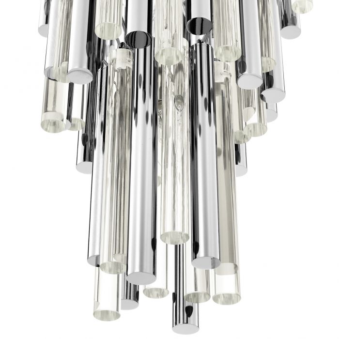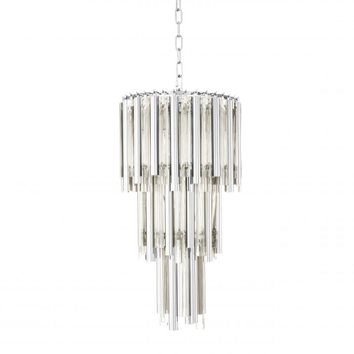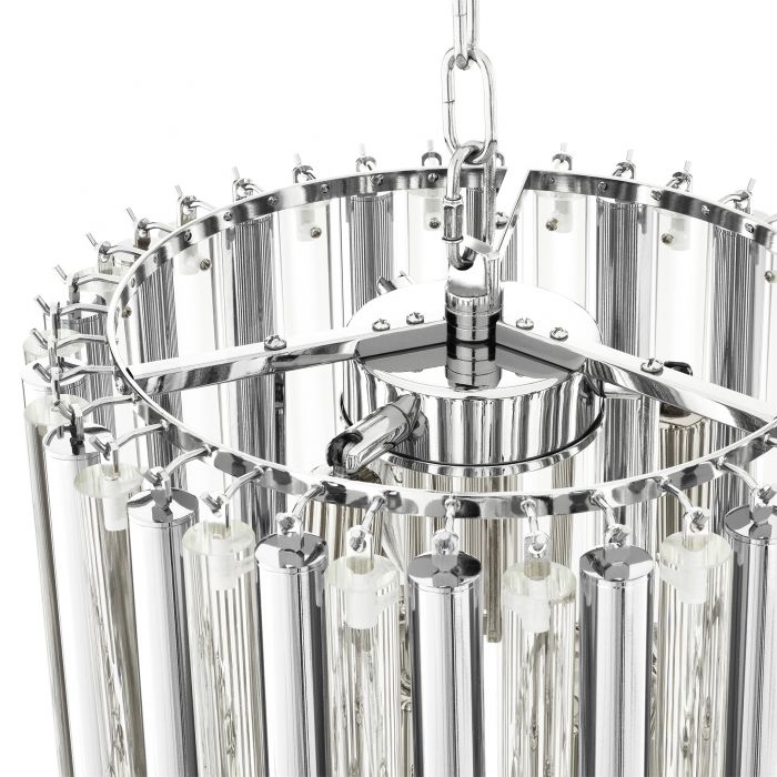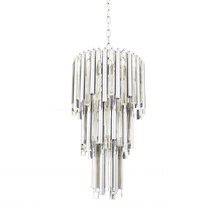 Capture the look of pure luxury with the Gigi S Chandelier. Like a glamorous piece of jewellery, this lustrous luminary provides optimum radiance in your décor. This Art Deco style chandelier features a tapered body with 3 hoops. Rods of clear glass and nickel finished metal are draped around the hoops.
