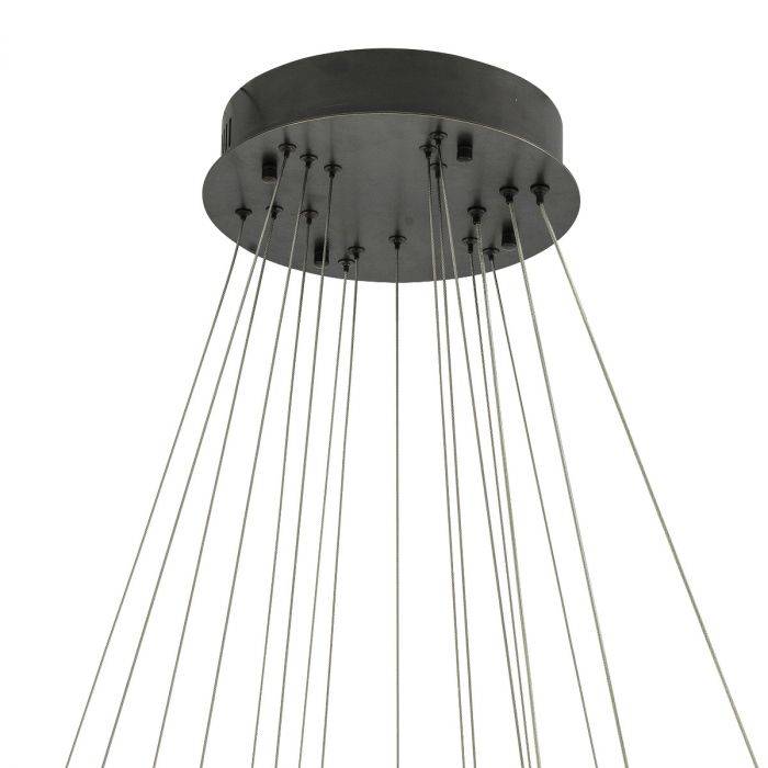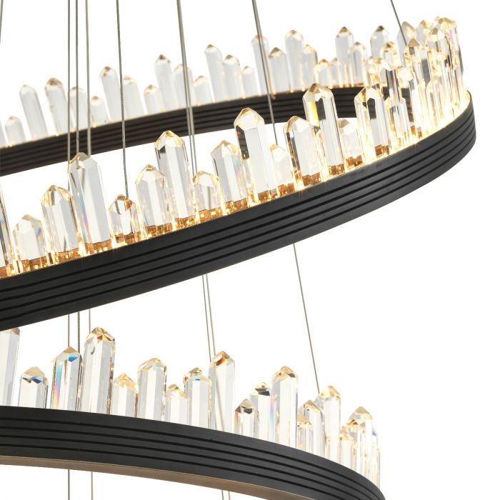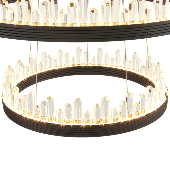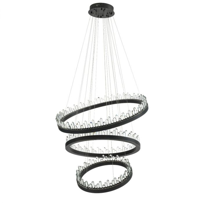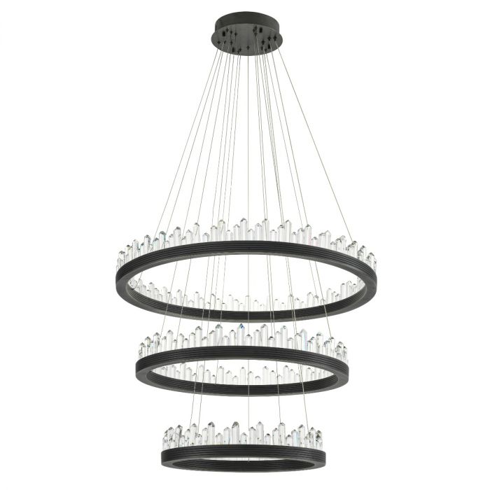 Light up your room with the wonderful Randall Chandelier. The playful design of this bronze finish 3-ring pendant will add character to your interior. Each ring can be hung in any desired position by adjusting the length of the cables. Integrated LED lights beautifully disperse light through the crystal glass decorations.