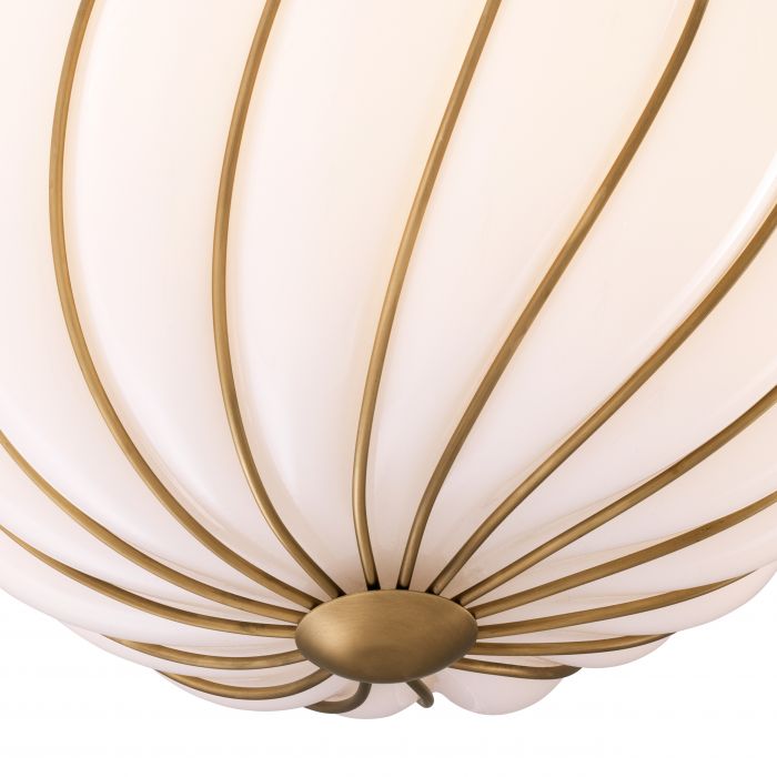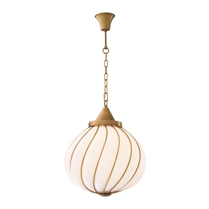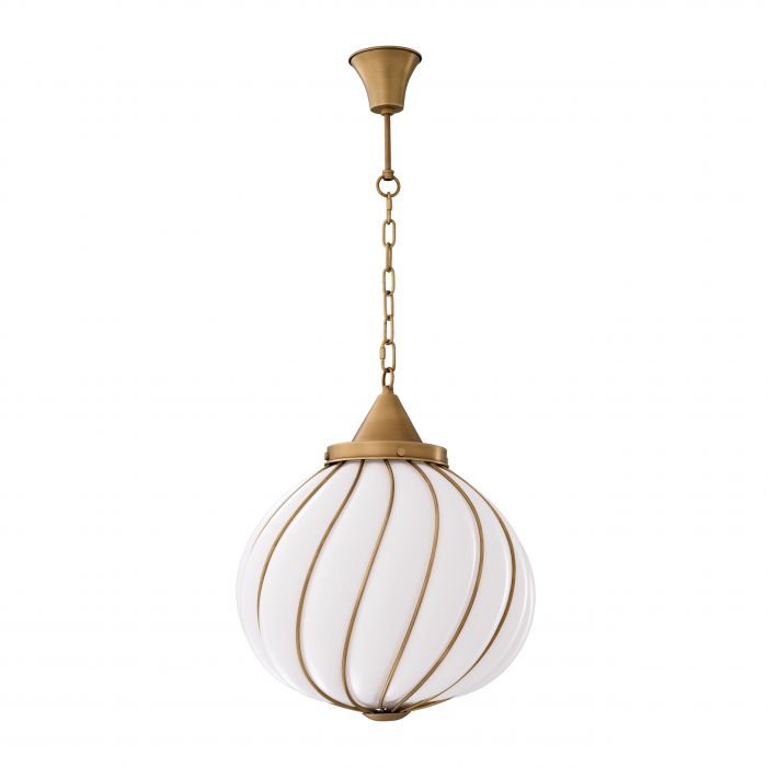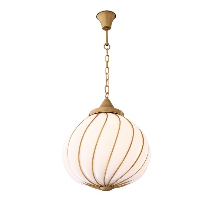 The Romano Chandelier features a scalloped sphere of white glass. With its antique brass finish, this traditional pendant light is an excellent choice for both period and contemporary settings. Ideal for lighting over tables and awesome grouped together for greater impact.