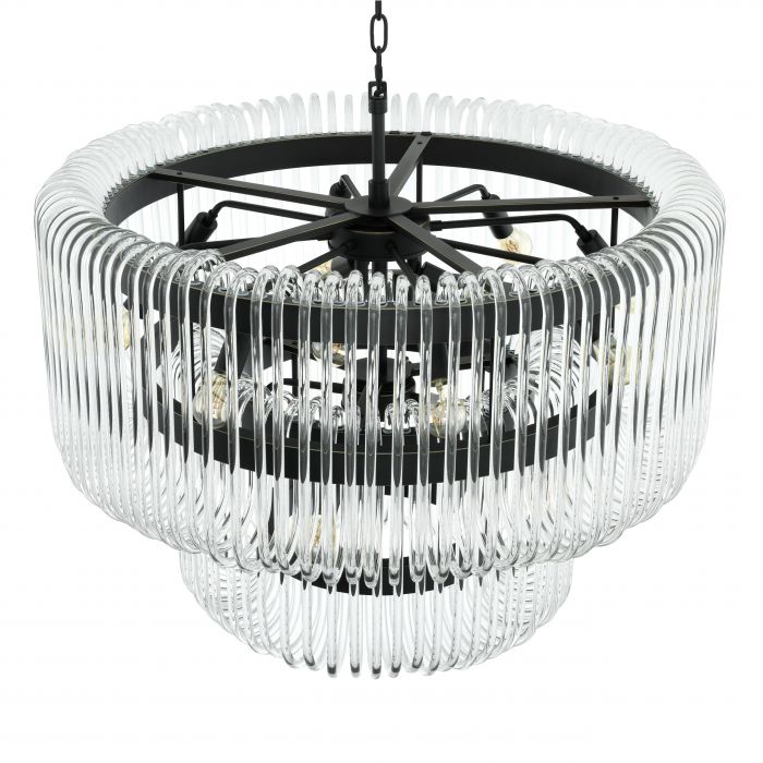 With its pronounced 1920s appeal, the enthralling Art Deco inspired Sutton House Chandelier enlivens each interior space. Featuring two rounded tiers with sparkling glass rods, this lovely luminaire has a bronze fixture for an elegant contrast.