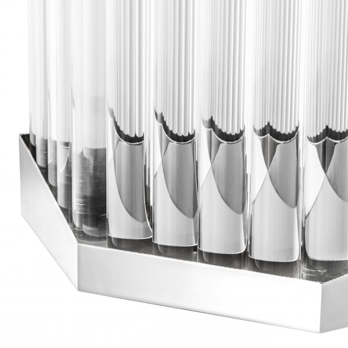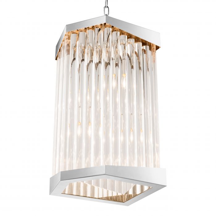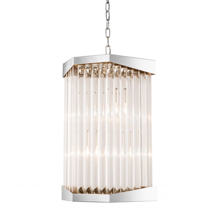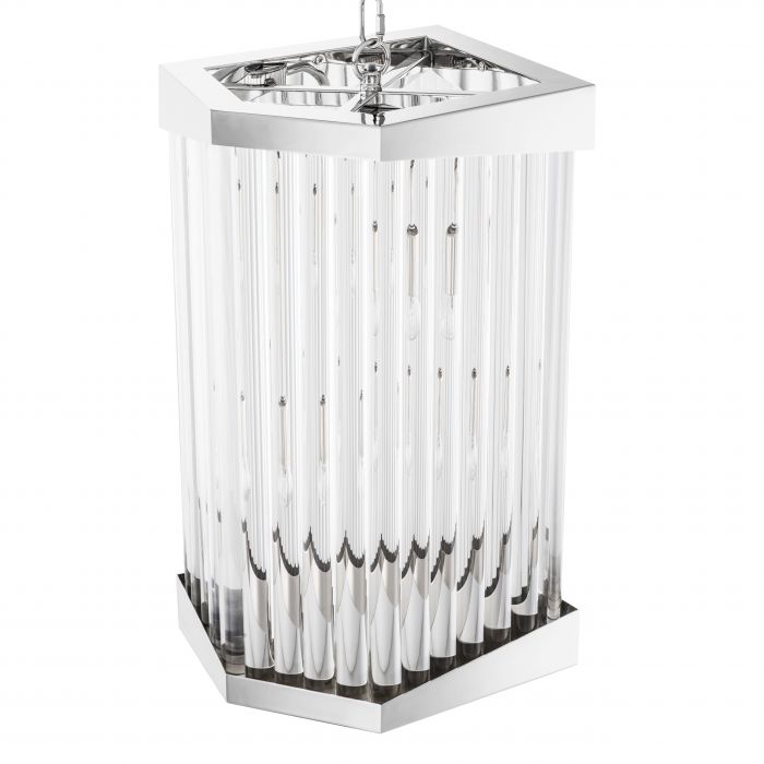 Adorn your hallway, bedroom, lounge or kitchen with the retro inspired Waltz Chandelier. Comprising a hexagonal nickel finished frame with a series of acrylic rods, this luxury chandelier lights up any room in vintage style.