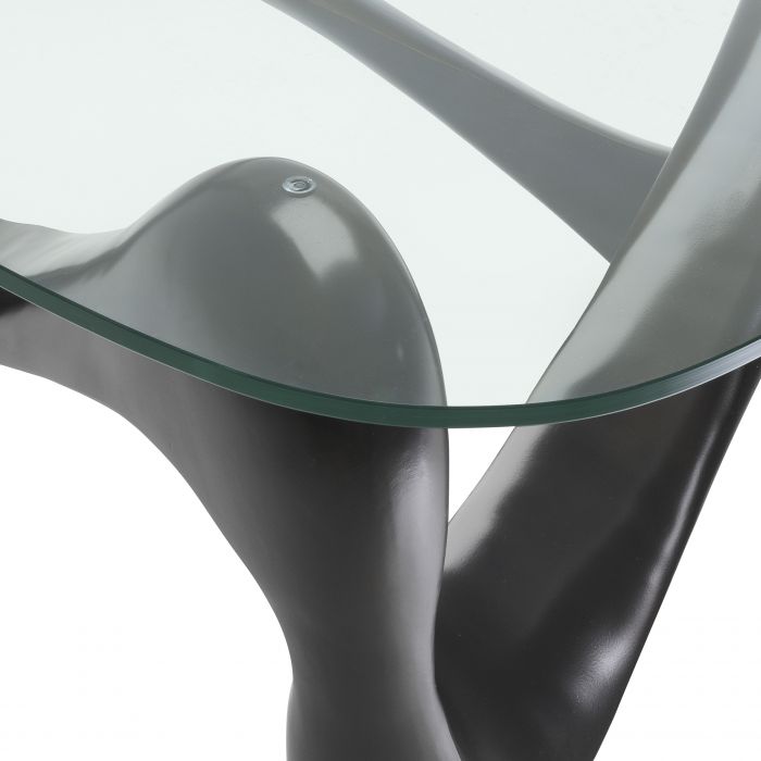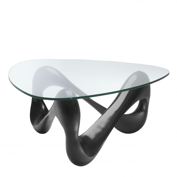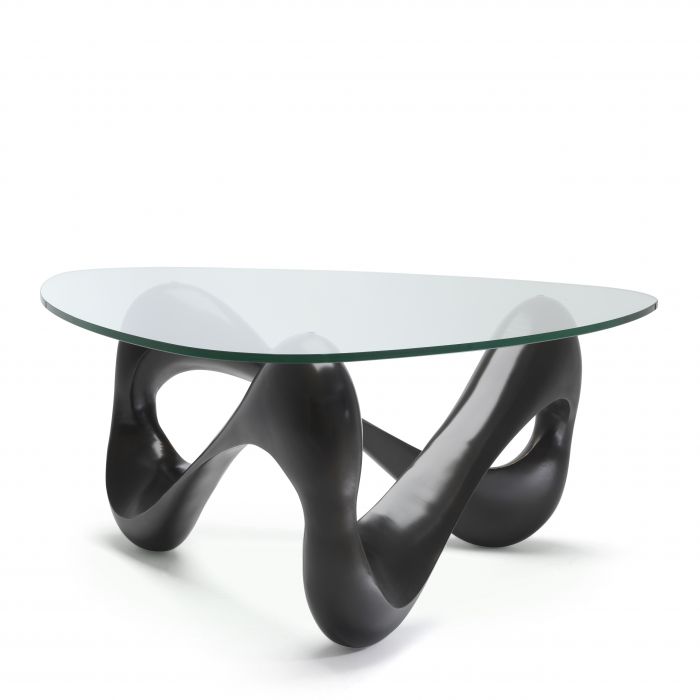 The Aventura Coffee Table is a genuine piece of art! It comprises a wavy bronze finish base in one piece and a triangular glass top with rounded corners. Warm up the ambience by placing this stunning table on top of a sumptuous carpet.