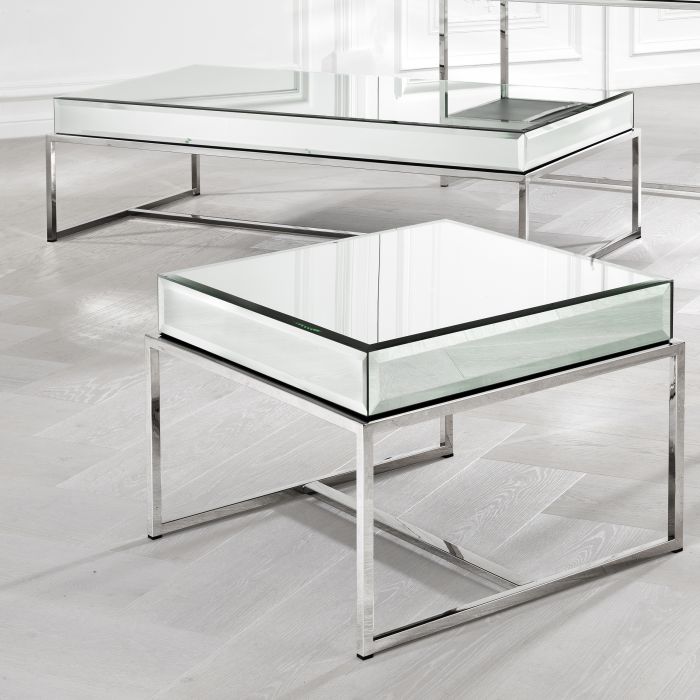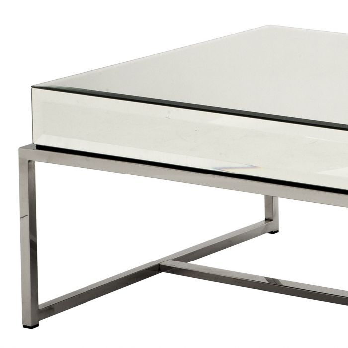 Bestow a little Hollywood glamour on your home with the Beverly Hills Coffee Table. This stunning piece comprises a sleek stainless steel frame with two side panels and a bevelled mirror glass top.