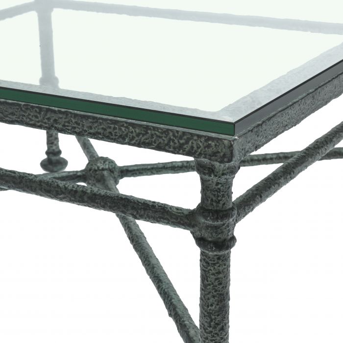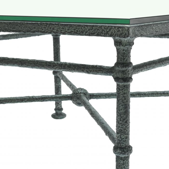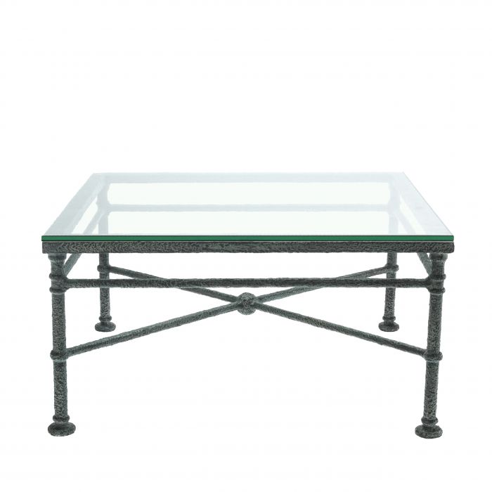 The chic Biënnale Coffee Table successfully couples the coolness of metal and the transparency of clear glass to create a table that delivers a light yet spacious feel. Beautifully wrought legs give this square table a traditional touch.