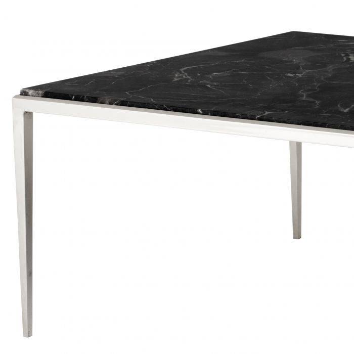 Add timeless style to your living room with the sleek Henley Coffee Table. This rectangular coffee table features a nickel finished frame and a brown marble tabletop with light veins.