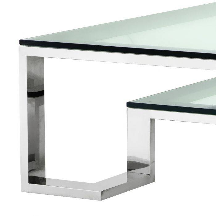 Transform your interior with the Huntington Coffee Table. With its clean line design, this rectangular polished stainless steel designer coffee table features a clear glass tabletop and a lower shelf that provides space for decorative home accessories.