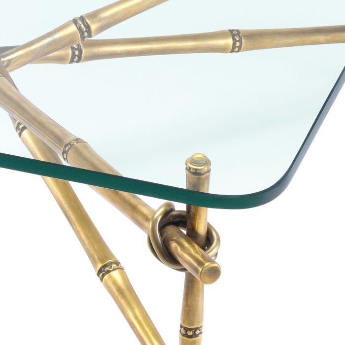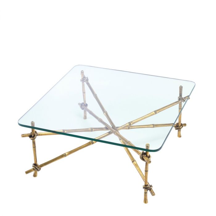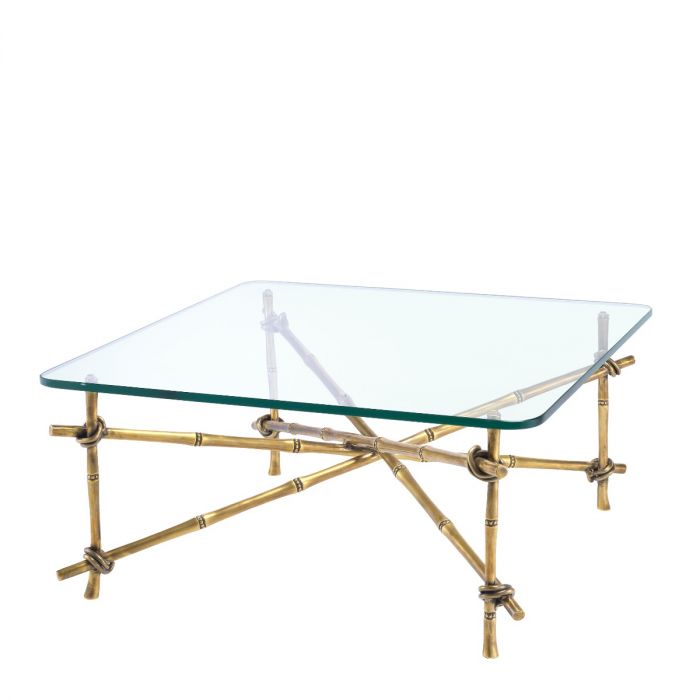 Bring Hawaiian style to your seating group with the Kahala Coffee Table. Pairing a natural look with vintage glamour, this gorgeous coffee table features a fascinating bamboo-like frame in a vintage brass finish and a tabletop of bevelled clear glass.