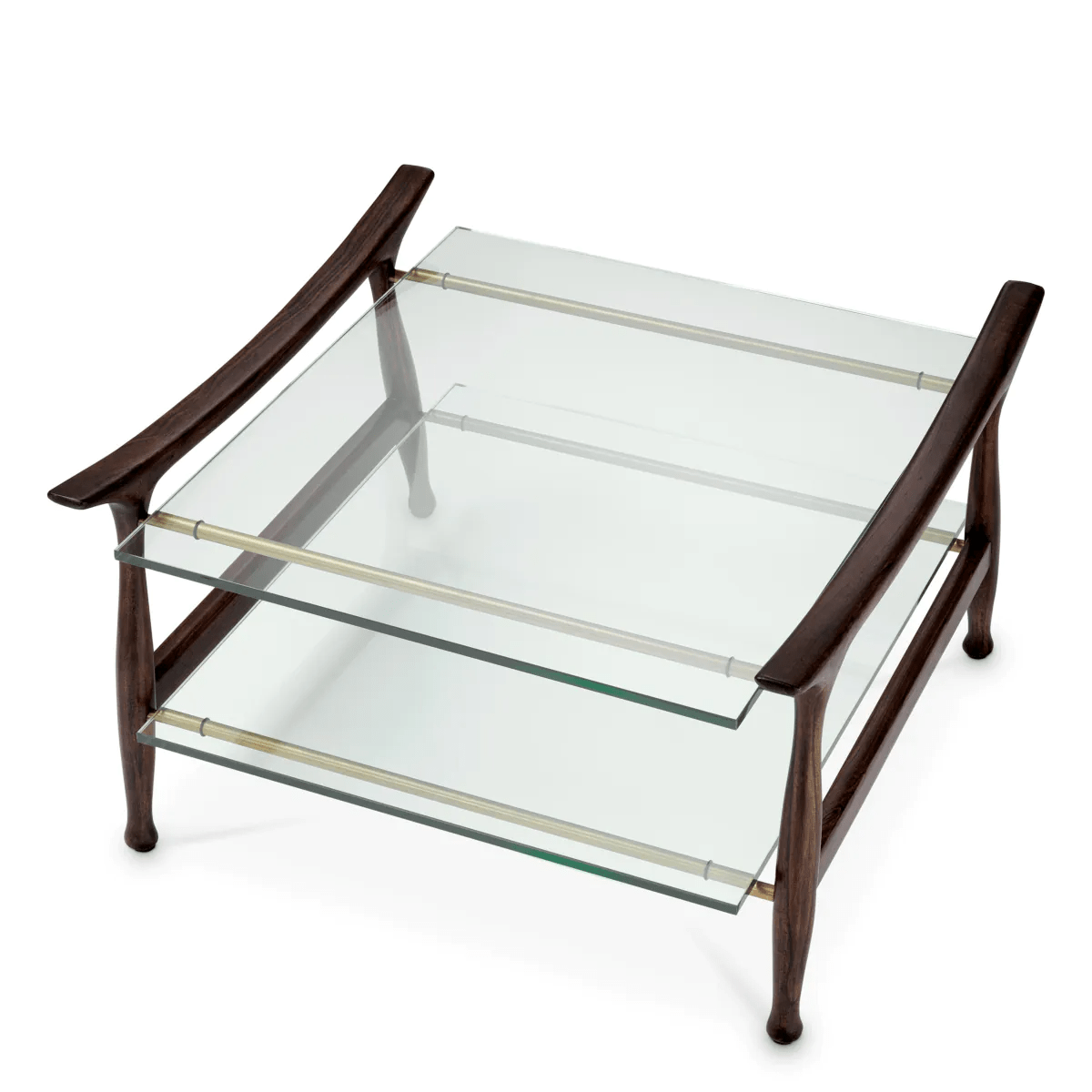 With its timeless brown finish and clear glass top, this coffee table anchors any living space with sophistication. The Eichholtz collection showcases exquisite craftsmanship and iconic design, making the Manzo an essential addition to a luxury lifestyle.
