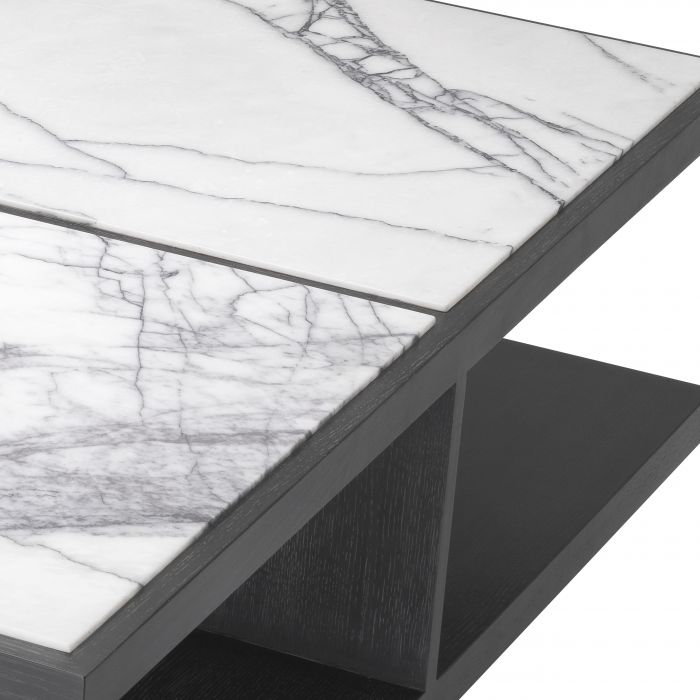 With its tabletop of Italian bianco lilac marble and niches in charcoal grey oak veneer, the quartered Miguel Coffee Table exudes luxury and modernity. The high class top of this charming piece of furniture will naturally attract vases and stylish accessories, while the niches offer storage space for books, magazines, remotes and the like.