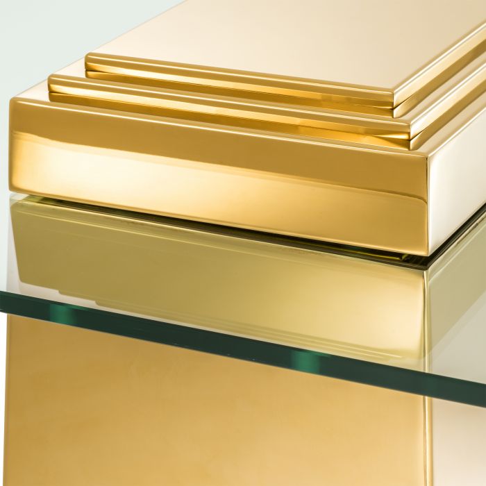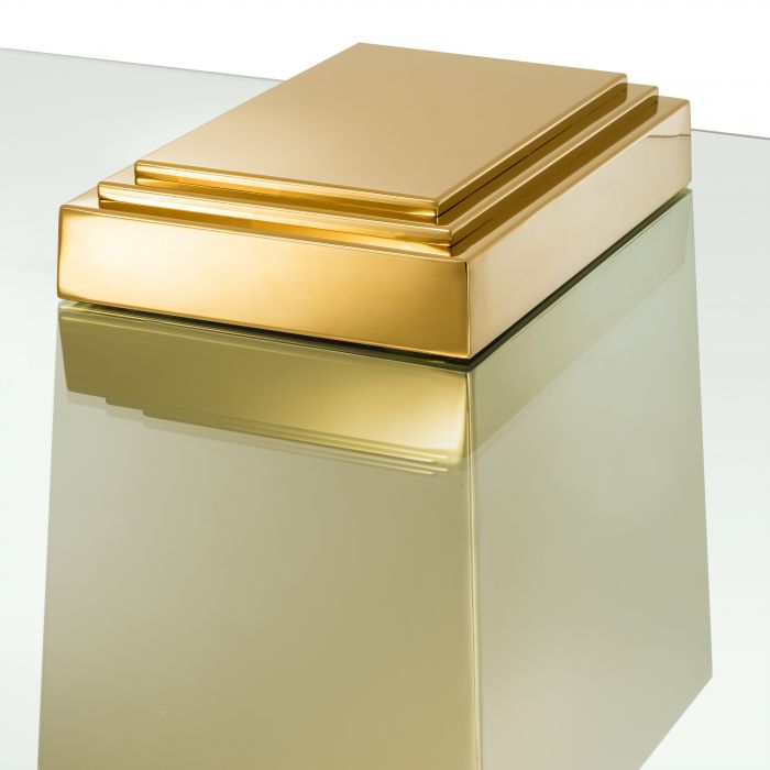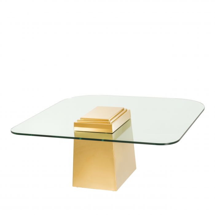 Add a splash of urban glamour to your home décor with the uniquely shaped Orient Coffee Table. Comprising an eccentric tapered base with gold finish and a rectangular clear glass tabletop with rounded edges, it’s a real eye catching piece of furniture.