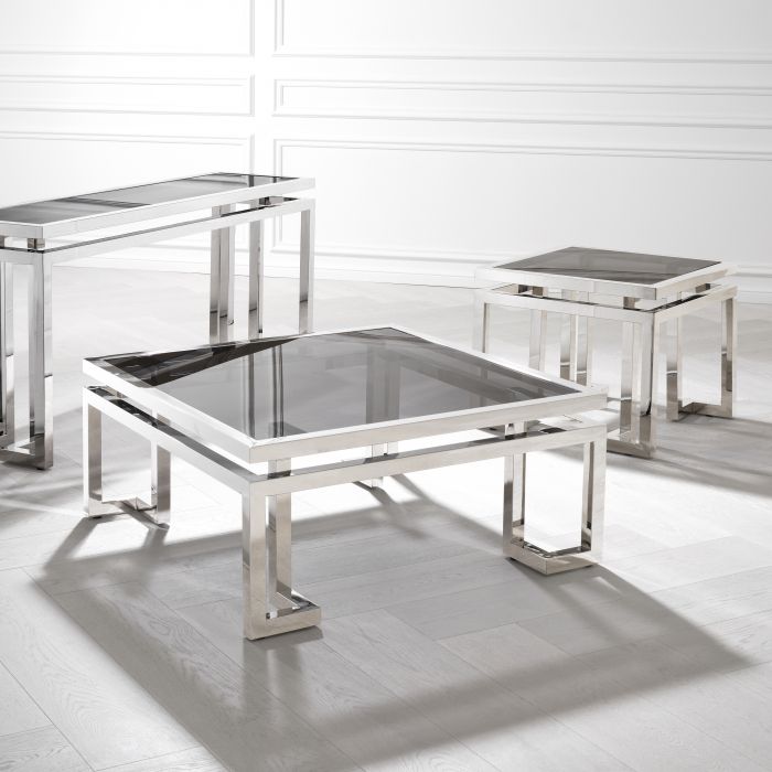 Relive the unmatched grandeur of the Art Deco era with the first-rate Palmer Coffee Table. Crafted from stainless steel, it features a polished finish and a tempered smoke glass tabletop. Combine with luxury lighting and accessories of the Eichholtz collection for a glamorous interior.