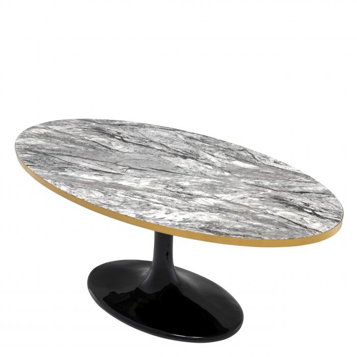 Give your lounge a mid-century modern appeal with the gorgeous oval Parme Coffee Table. Featuring a grey faux marble tabletop with brushed brass rim, this tulip style coffee table is sure to be a high-impact anchor piece in your interior ensemble.