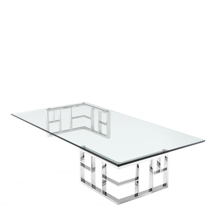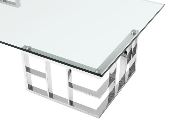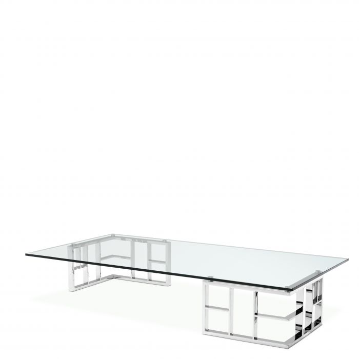 Channel timeless glamour in your interior with the stunning Ramage Coffee Table. Bauhaus appeal and oriental style converge in this exceptional design. The two angular trellis base elements are presented in polished stainless steel. The clear glass tabletop makes their beauty stand out. A great asset for transitional and eclectic décors.
