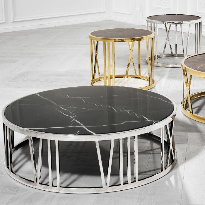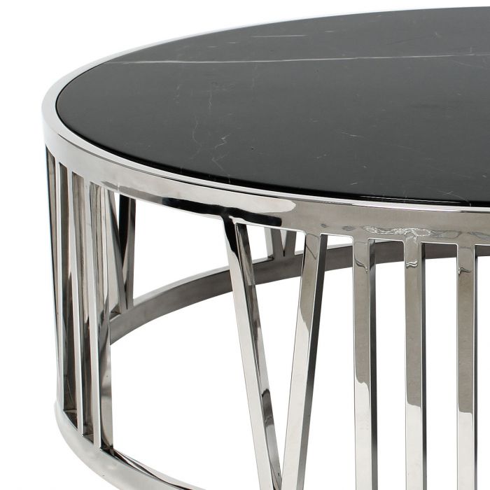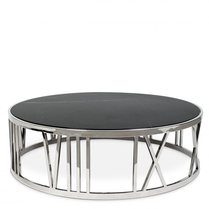 Comprising a polished stainless steel frame with incorporated Roman numerals and a black marble tabletop, the Roman Figures Coffee Table will fit well in any interior whether traditional or modern.