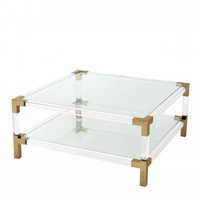 Coffee Table Royalton features two clear glass table surfaces that run parallel to clear acrylic rods. Corners and legs of brushed brass finish complete the modern aesthetic. CLEAN LINES WITH BAUHAUS ALLUREEnjoy the Bauhaus designer appeal of the Eichholtz Royalton series. Let these elements add a modern touch to your hallway, living room or bedroom. Combine with luxury lighting and accessories of the Eichholtz collection for a contemporary interior style.