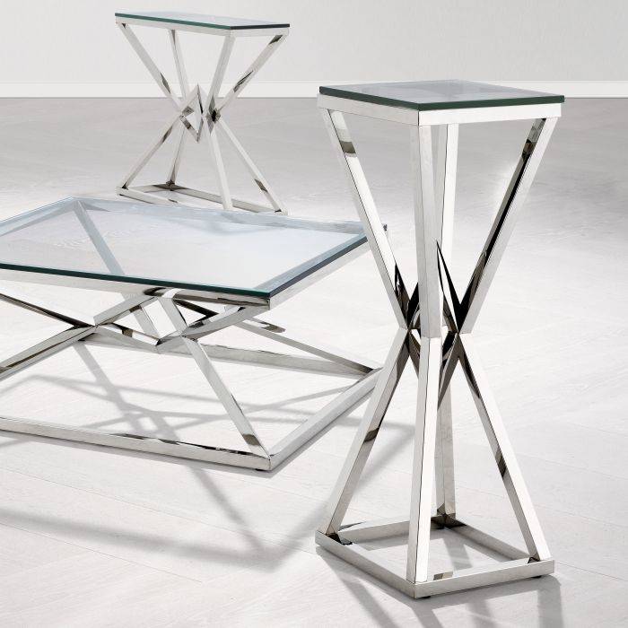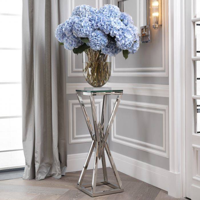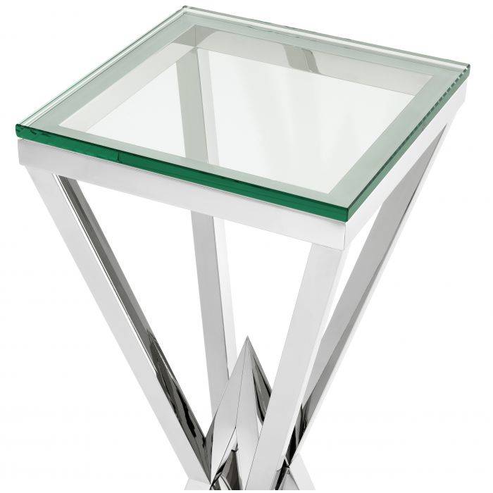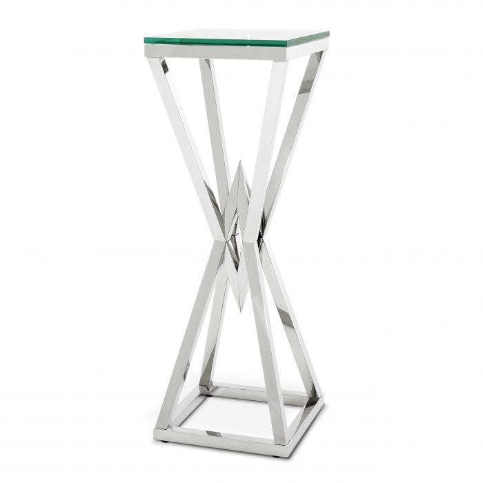Discover the versatility of the Connor Column. With its shiny pyramid base, this designer table adds radiance and splendour to your home décor. Crafted from stainless steel, the conspicuous geometric base features a polished finish and a clear glass top.