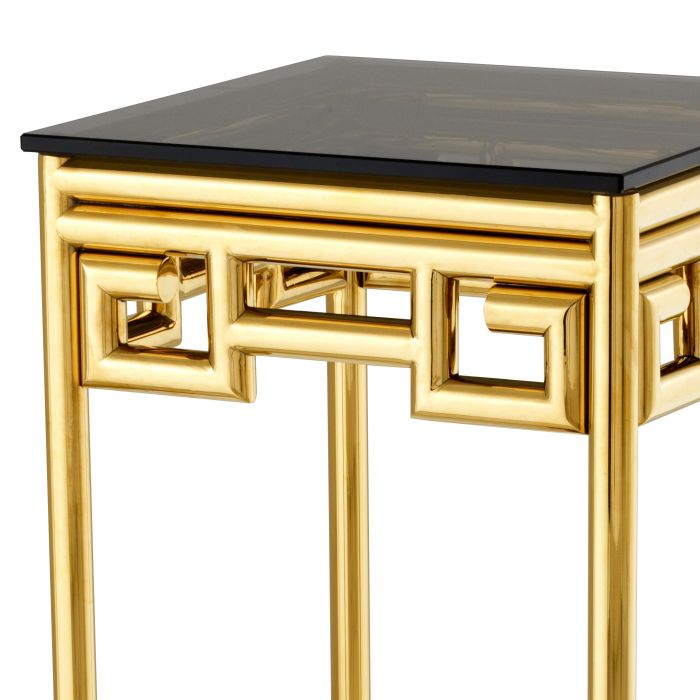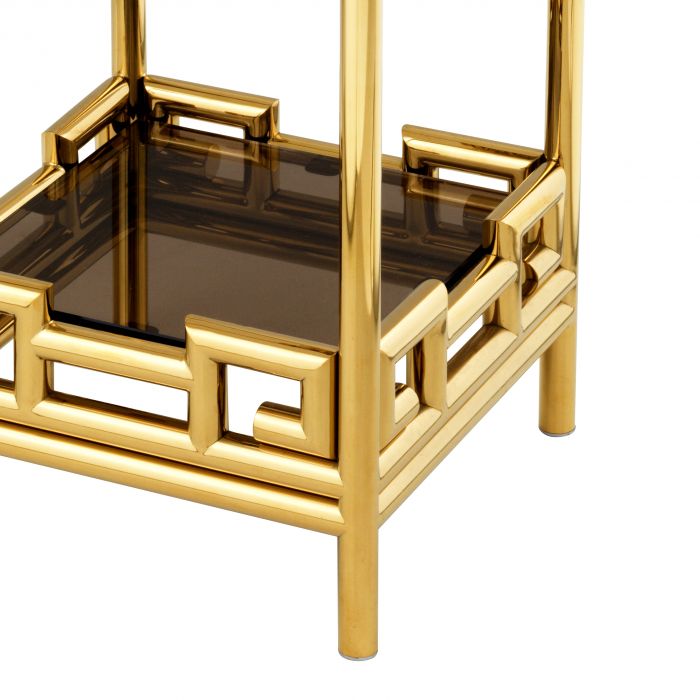 Elevate your favourite plant or most treasured display item in designer style with the Niagora Column. Its gold finished frame with iconic Greek key detailing features a top and lower shelf from smoke glass.