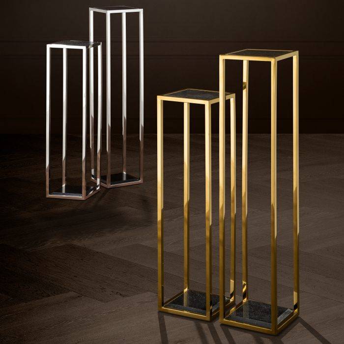 The ultra-modern Odeon Column is ideal for holding a vase or photo frame. It comprises a gold finished structure of four sleek stem legs that join at the top and bottom. The black marble top and base add to the glamorous look.
