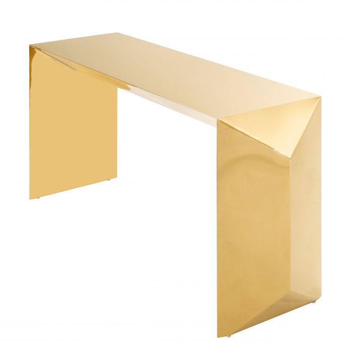The Carlow Console Table adorns your hallway or lounge with its simple geometry and dynamic sense of style. Skillfully crafted with sturdy steel, it is presented in a glamorous gold finish for a lavish look.