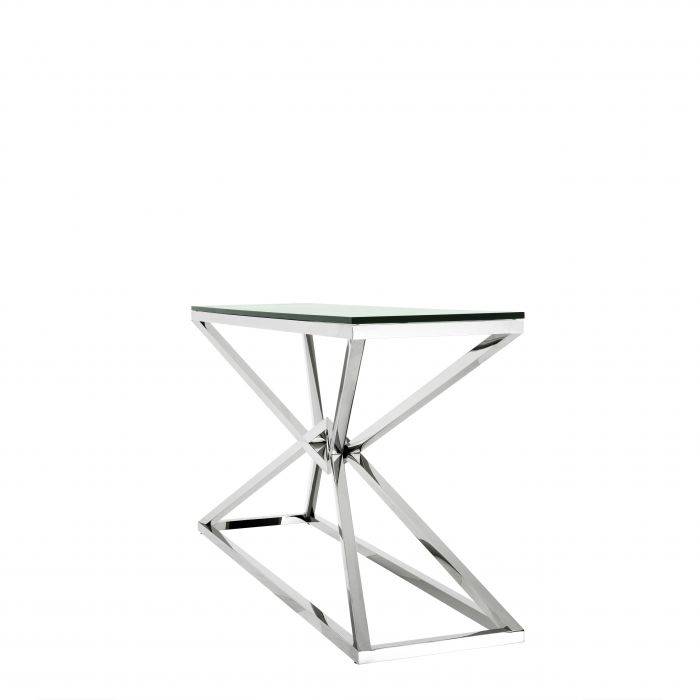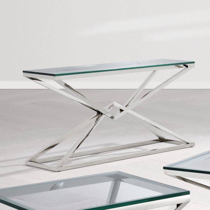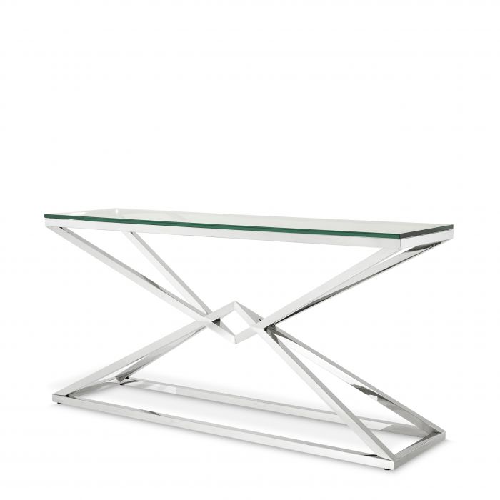 Discover the versatility of the Connor Console Table. With its shiny pyramid base, this designer table adds radiance and splendour to your home décor. Crafted from stainless steel, the conspicuous geometric base features a polished finish and a clear glass tabletop.