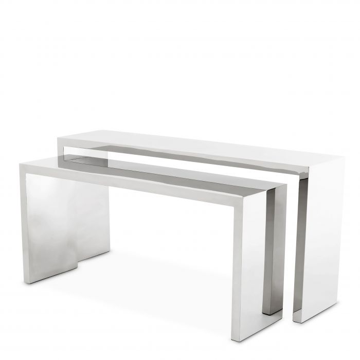 Add super stylish glamour to your home décor with the set of 2 Esquire console tables. This polished stainless steel console set exudes sleek functionality and innovative design. With a rectangular frame forming the table legs and tabletop, both tables comprise a single entity.