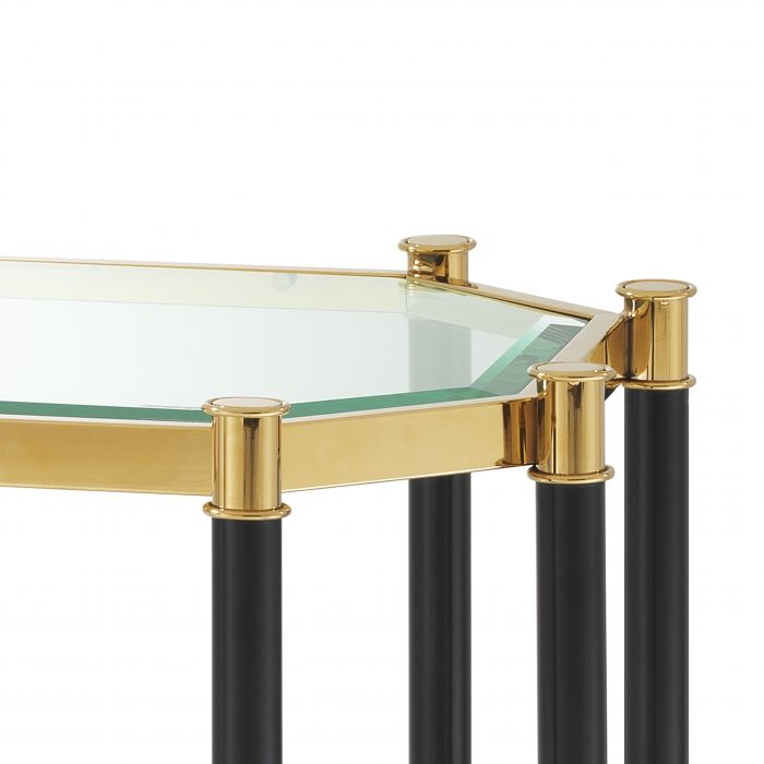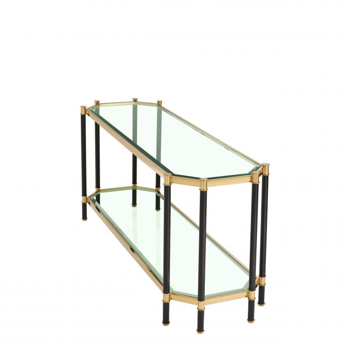 Anchor your favourite aesthetic in luxury style with the glamorous Florence Console Table. This art deco style furniture piece features a clean-lined symmetrical frame with glossy gold and matte black finish and a clear glass tabletop. A TOUCH OF GATSBY GLAMOURThe Roaring Twenties are entirely in vogue again, so inject some Gatsby glitz and glamour in your home décor. Jazz up your interior with the Art Deco style pieces from the gorgeous Florence Series. This luxury furniture series perfectly captures the opulence of the world of the young millionaire Jay Gatsby, the title character of F. Scott Fitzgeralds literary classic.