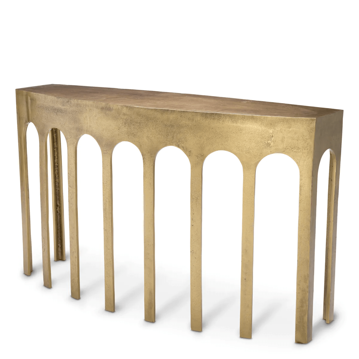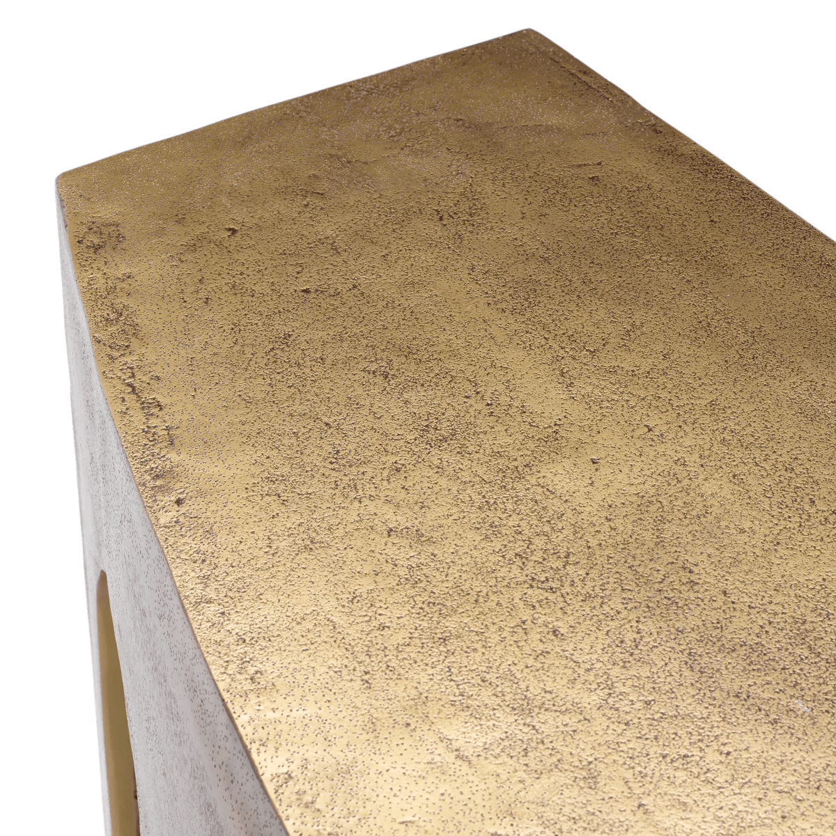 The Gardini Console Table features a captivating vintage brass finish and a beautifully textured surface that exudes sophistication and elegance. The unique texture of the Console Table Gardini adds a touch of individuality while its versatility makes it a must-have addition to any home decor. Complete the look in your home with the coordinating Coffee Table Gardini and Side Table Gardini.