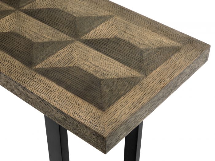 With its beautiful marquetry, the Gregorio Console Table will give your home décor timeless appeal. The inlaid tabletop features a beautiful geometric pattern that creates a 3D optical illusion. Since the soft and natural tones of the oak veneer go well with all colours, this sturdy furniture piece matches every interior scheme.