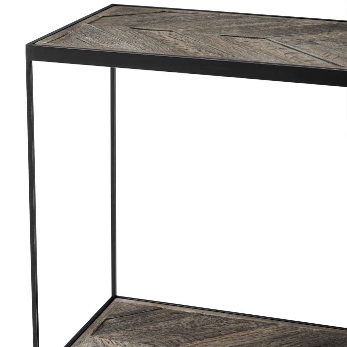 Instantly elevate the look of your hallway or living room with the La Varenne Console Table. This stylish console table comprises a zinc finished steel frame with an weathered oak table top that nestles an equally proportioned low shelf surface below. Mix and match with design furniture and luxury lighting from the Eichholtz collection for an eclectic interior style.