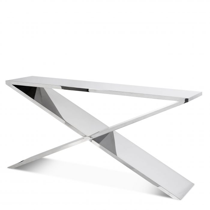 The clean-lined shape of the Metropole Console Table will always satisfy. With its impressive X-shaped base of polished stainless steel and clear glass tabletop, this modern console proves that the greatest ideas are often the simplest.