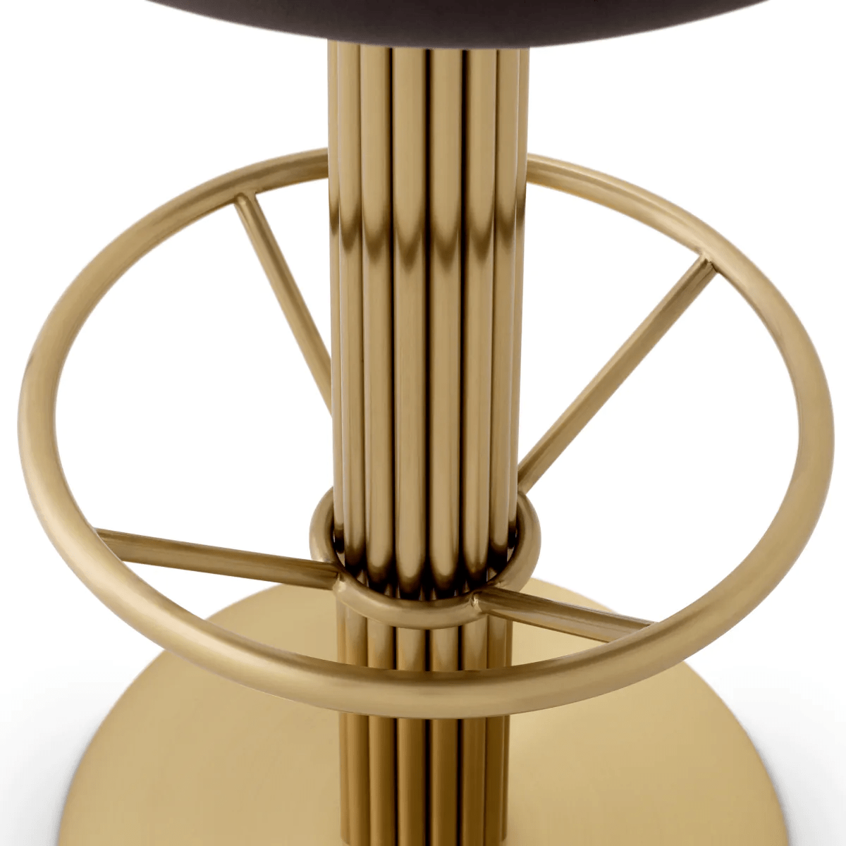 This iconic piece features a sophisticated brushed brass finish and roche dark grey velvet, seamlessly blending metal and fabric. Elevate your interior design with the timeless elegance of the Dorland Counter stool. Explore Eichholtz’s exclusive collection and add a touch of artisan craftsmanship to your modern living space.