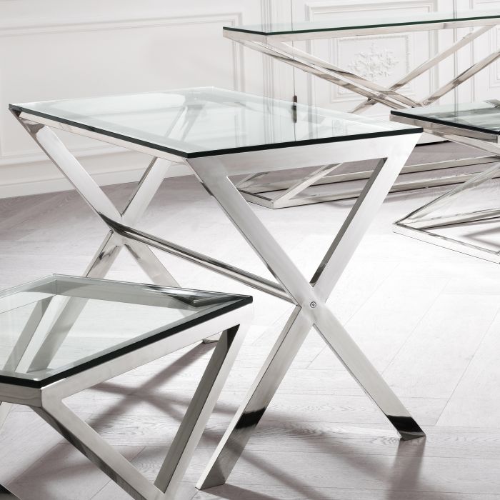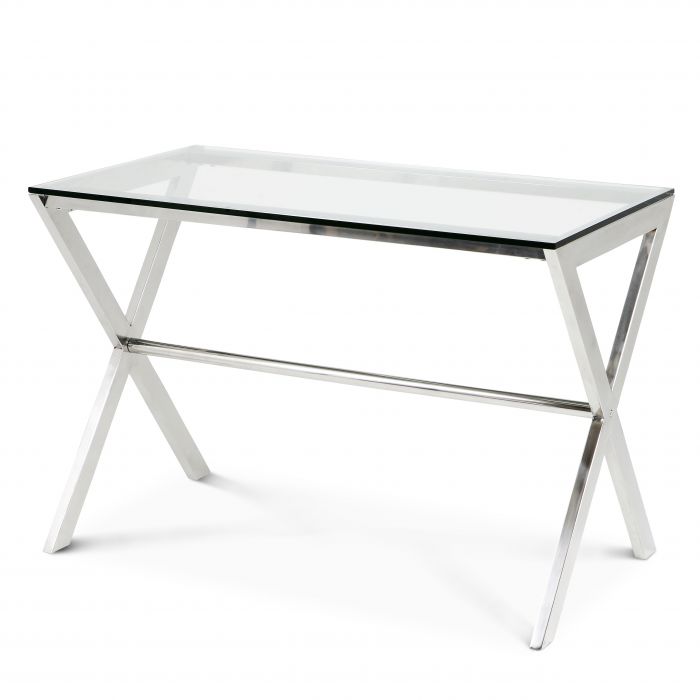 Add a trendy edge to your home interior with the voguish Criss Cross Desk. This chic furniture piece comprises a stainless steel frame with a polished finish and comes with a rectangular clear glass top.
