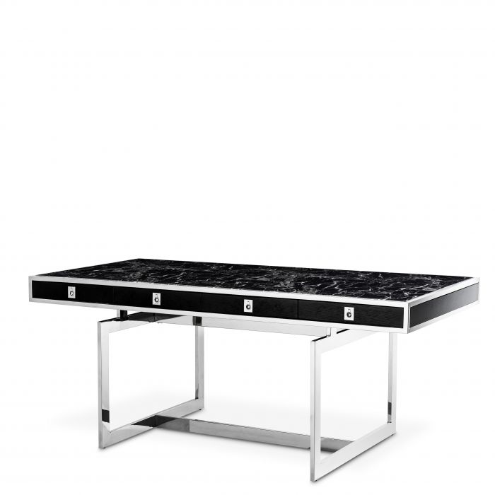 The sleek, ultra-modern design of the Evolution Desk makes this furniture piece a wonderful addition to your study or home office. Its black faux marble tabletop offers plenty of workspace, while its stainless steel construction ensures years of reliable use. Five oak veneer drawers are perfect for storing stationery and office supplies.